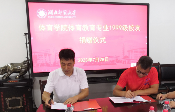 现场还举行了校友捐赠仪式,为答谢母校的培育之恩,校友们为91在线 捐赠了排球柱等物品。