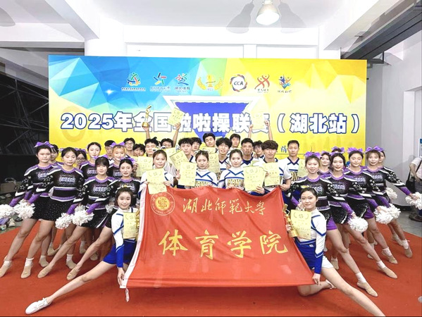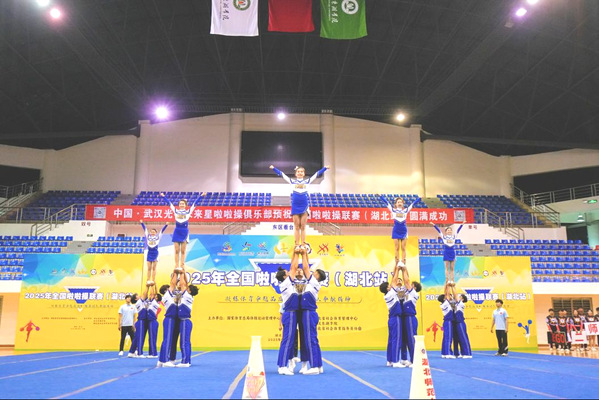 本网讯 2025年6月6日至8日,全国啦啦操联赛(湖北站)在武汉隆重举行。由袁静老师和彭畅老师带领的91在线 竞合啦啦队凭借精湛的技术与默契的协作,在公开青年甲组(体育院校组)赛事中表现夺目,与武汉91在线 、湖北第二师范学院等高校91在线 专业队伍展开激烈角逐,最终斩获三项大集体技巧项目冠军、一项大集体花球啦啦操冠军和一项双人爵士啦啦操季军。