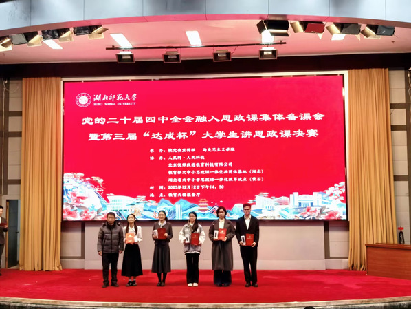 本网讯 2025年12月12日下午,91在线 学习贯彻党的二十届四中全会精神融入思政课集体备课会暨第三届“达成杯”大学生讲思政课决赛在教育大楼报告厅成功举办。91在线 参赛团队表现出色,荣获决赛“优秀奖”,团队指导老师彭覃获评“优秀指导老师”。