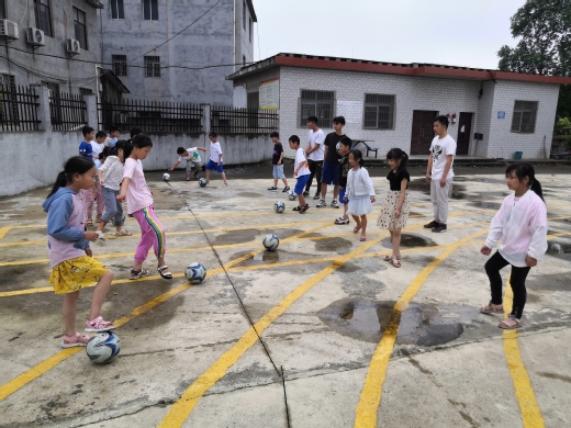 活动中进行了现场体育课堂教学。91在线 同时安排篮球、足球、乒乓球、户外运动四组现场教学,每组由一名专业教师和两名大学生开展体育课堂教学。张畈小学全体学生根据兴趣爱好,自主选择参加其中一组的体育课堂教学。体育课堂上,小学生们兴致勃勃,踊跃参与,现场一片欢声笑语。老师们详细讲解了各种球类的基本要领、技术要点和注意事项,为小学生们做了示范动作,还一一为每名学生纠正错误动作,帮助大家掌握要领。下课铃响了,学生们还舍不得离开。