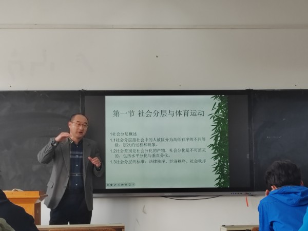郅向东老师给大家作了教学展示,他教态亲切自然,语言清晰,教学设计合理,结合当前社会体育分层现象,运用启发式、讨论式等灵活多样的教学手段教学方法,将内容讲得深入浅出。