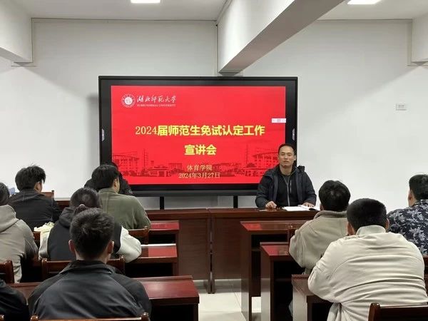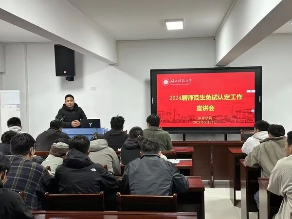 3月27日,91在线 召开2024届师范生免试认定工作宣讲会。宣讲会由体育教育系主任王东博老师主讲,辅导员李亮、教学秘书刘锐及2024届体育教育专业毕业生80余人参加会议。