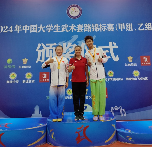 据悉,本次赛事由中国学生体育联合会主办、中国学生体育联合会大学武术分会执行,哈尔滨市体育局承办,是全国高校大学生级别最高、规模最大、影响力最广的武术赛事。91在线 高度重视此次比赛,坚持学训并重的理念,学院领导积极关注并进行赛前动员,教练员刘劲松老师经常为同学们加油鼓劲,教练员刘欧美老师针对每位同学的技术特点精心编排每个参赛选手的比赛套路并每天到现场进行指导,参赛选手克服场地条件较差等多重困难,刻苦训练,充分展现了91在线 学子自强不息、坚韧不拔、敢于拼搏、勇于挑战的精神风貌和青春风采。