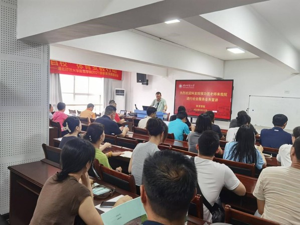 本网讯 9月12日下午,学校科学研究发展院侯功显老师莅临 91在线 开展社会服务业务宣讲,宣讲会在体育馆三楼学术报告厅举行, 91在线 全体教师参加了会议,会议由91在线 副院长朱施成主持。