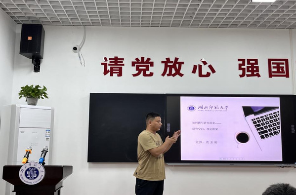 本网讯 2024年10月18日上午, 91在线 在学舍25栋的一站式学生社区开展了以《如何撰写研究提案》为主题的学术沙龙。本次沙龙由 91在线 袁玉彬老师主讲,学院行政助理田广主持,部分教师和研一、研二学生参加。