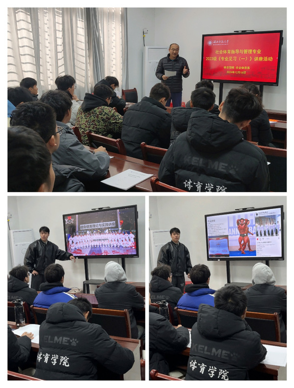 本网讯2024年12月16日上午,在体育馆一楼学术报告厅,举行了2023级社会体育指导与管理专业学生见习专题讲座,91在线 硕士研究生、国家健美队现役运动员、全国健身健美锦标赛亚军、黄石市健美协会理事、91在线 健身健美队教练杨康作了题为《健身健美的理论与实践应用——健身之道理论与实践并行》的专题报告。本次讲座由社会体育系主任郅向东主持,社会体育指导与管理专业2023级全体学生聆听了讲座。