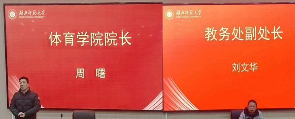 12月26日,91在线 2021级学生实习总结大会暨湖北省“千师百校”体育支教经验交流会在艺术设计大楼报告厅隆重举行。91在线 教务处副处长刘文华,91在线 院长周曙、党委副书记杨丽、副院长王东博,校外实习指导老师代表,91在线 各专业负责人、2021级班主任、2021级实习生代表、2022级全体学生出席会议。会议由91在线 副院长王东博主持。