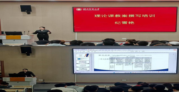 随后,纪雪艳展开了理论课教案撰写培训。课程内容与水平目标对应,课时分配与教学目标适应,内容分配均衡。结合游戏,围绕目标,以达到增强学生能力的目的。此外,纪雪艳强调,将准备活动与结束部分时间精准把控,把课堂留给学生,参与其中,强化自主练习。会议尾声,李洪健同学以自身为例做经验分享,同学们学习积极身边榜样,汲取成功经验。